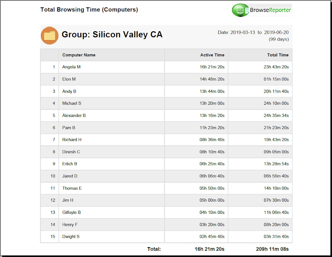 Toplam Tarama Süresiİnternette en çok hangi kullanıcının gezindiğini ve en çok internette kimin kaldığını belirlemek için tüm tarama sürelerinizin bir listesini alın.