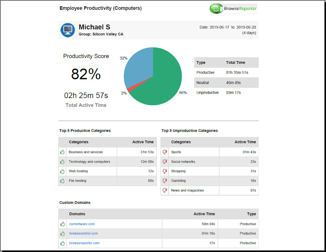 BrowseReporter, yazılımını çalışanlarınızın bilgisayarlarına yükleyerek çalışanların internet faaliyetlerini izleyebilir . BrowseReporter’ın izleme ve raporlama özellikleriyle çalışanlarınızın göz attığı web sitelerini, web sitelerini ne kadar süre taradığını ve daha fazlasını inceleyebilirsiniz. |