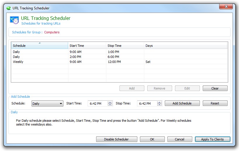 İnternet tarama etkinliklerini her zaman toplamak çoğu zaman aşırı olabilir. Örneğin, yöneticiler, tarama çalışmalarını yalnızca mesai saatleri sırasında izlemekle ilgilenebilir.