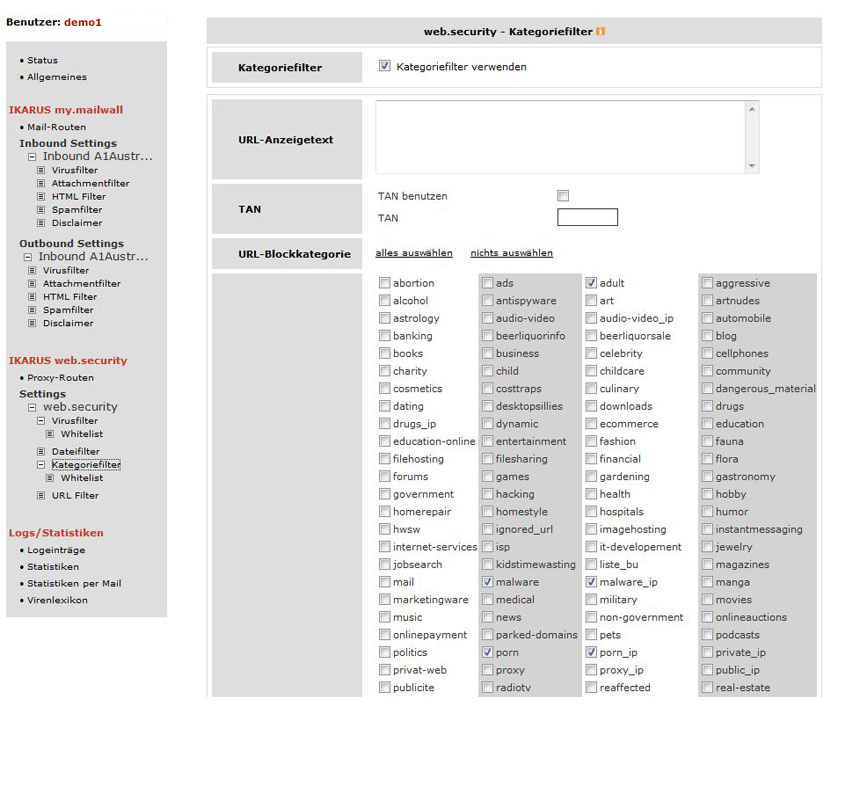 - IKARUS URL-engelleme listesini kullanır (e-dolandırıcılıkla tanınan internet sitelerine erişimi önler).